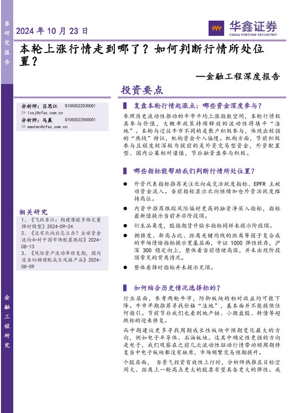 【华鑫证券】【20241023】金融工程深度报告:本轮上涨行情走到哪了?如何判断行情所处位置?-23页