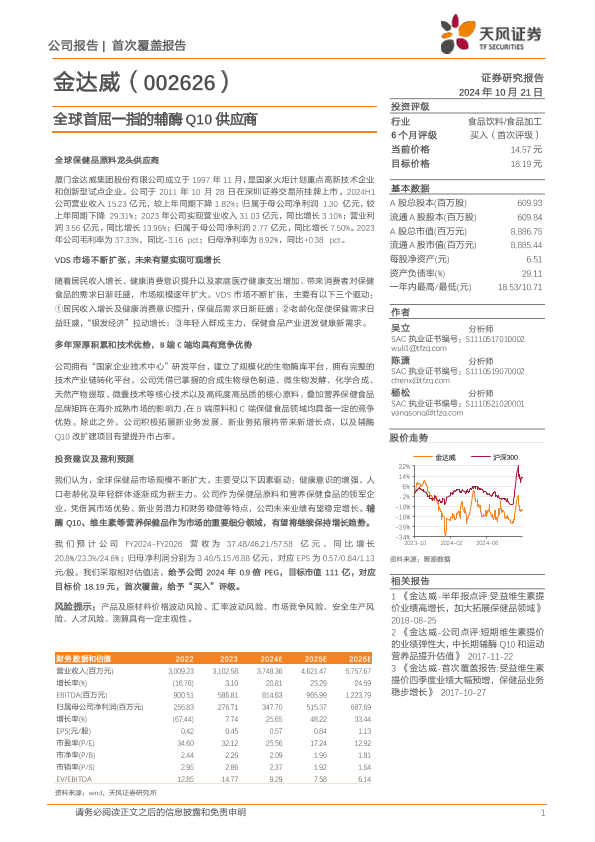 【天风证券】【20241021】金达威(002626)全球首屈一指的辅酶Q10供应商-23页