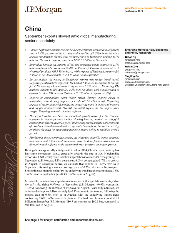 【J.P. Morgan】【20241014】FI-China September exports slowed amid global manufacturing sector uncertainty-12页