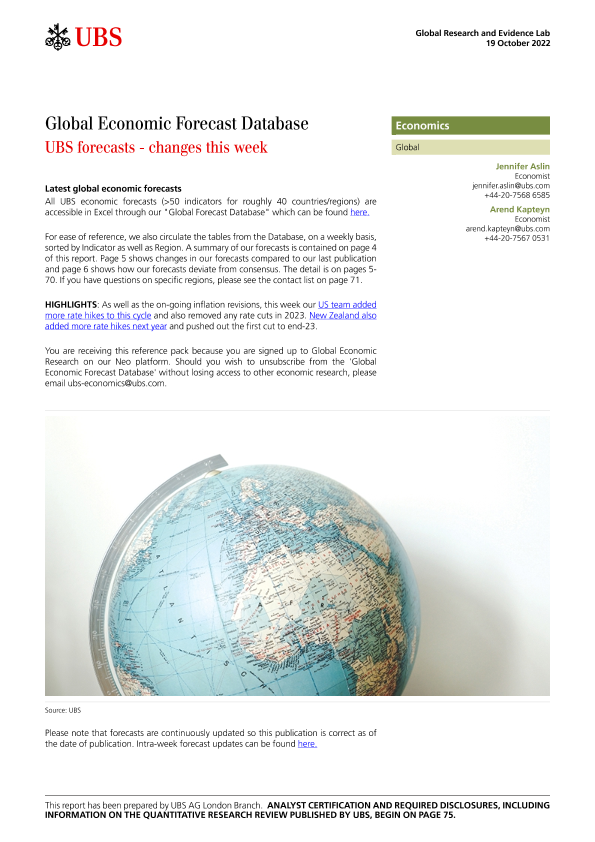 【UBS】【20221019】Global Economic Forecast Database _UBS forecasts - changes this week-78页
