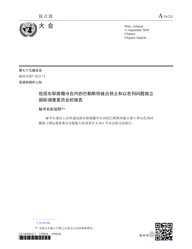 【联合国】【20240911】以色列的性侵丑闻,被联合国写成了报告-47页