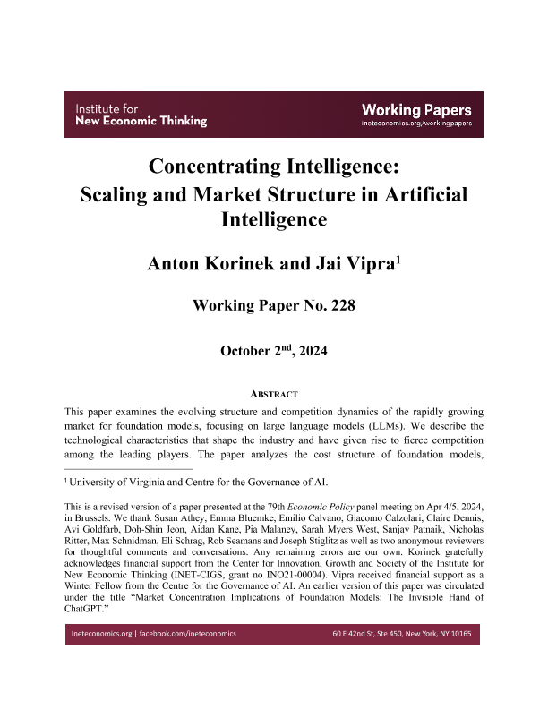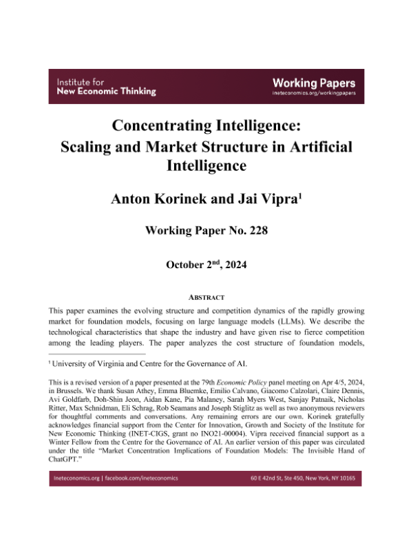 【新经济思想研究所】【202410】Concentrating Intelligence Scaling and Market Structure in Artificial Intelligence-32页