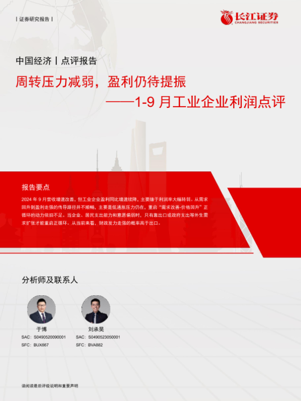 【长江证券】【20241028】1-9月工业企业利润点评:周转压力减弱,盈利仍待提振-13页