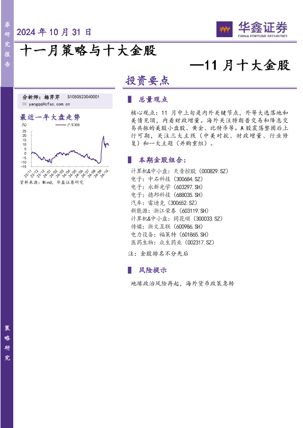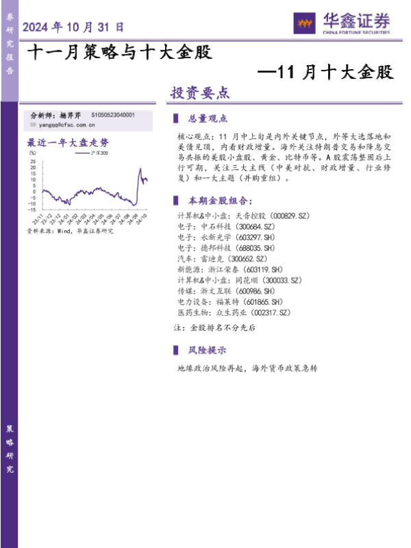 【华鑫证券】【20241031】11月十大金股:十一月策略与十大金股-19页
