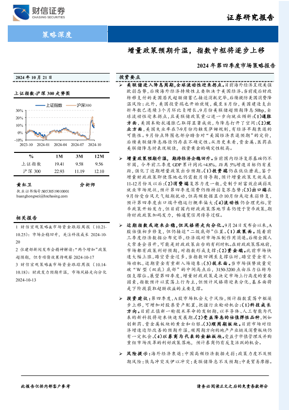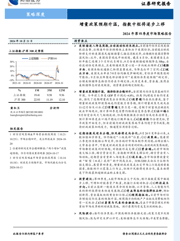 【财信证券】【20241021】2024年第四季度市场策略报告:增量政策预期升温,指数中枢将逐步上移-40页