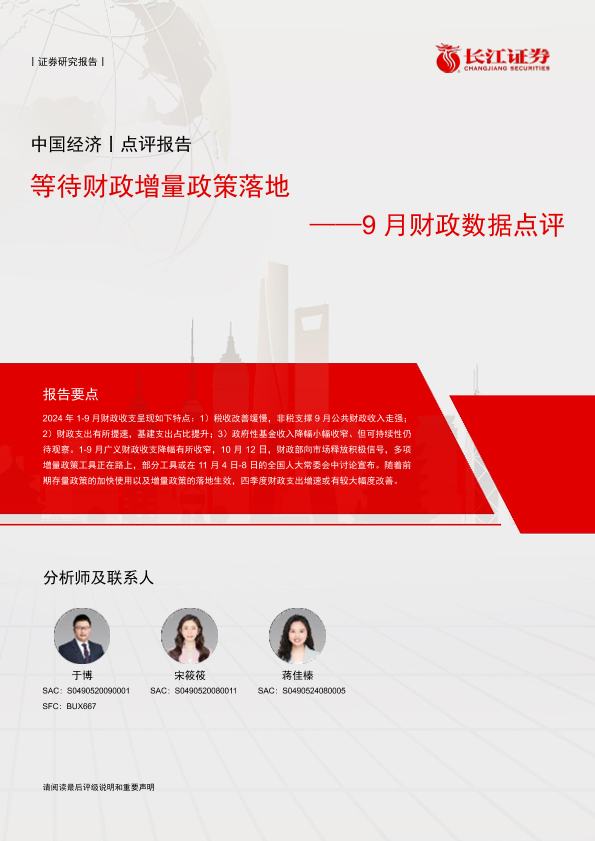 【长江证券】【20241027】9月财政数据点评:等待财政增量政策落地-11页