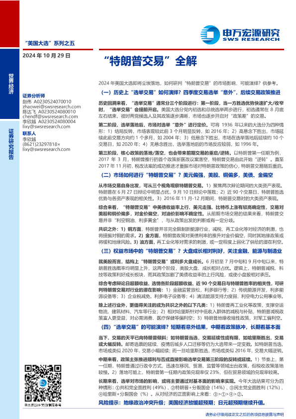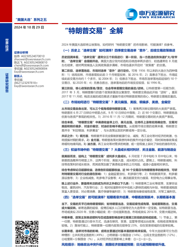 【申万宏源】【20241029】“美国大选”系列之五:“特朗普交易”全解-26页