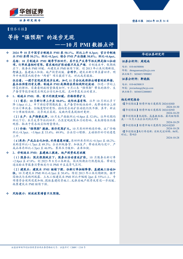 【华创证券】【20241031】【债券日报】10月PMI数据点评:等待“强预期”的逐步兑现-10页