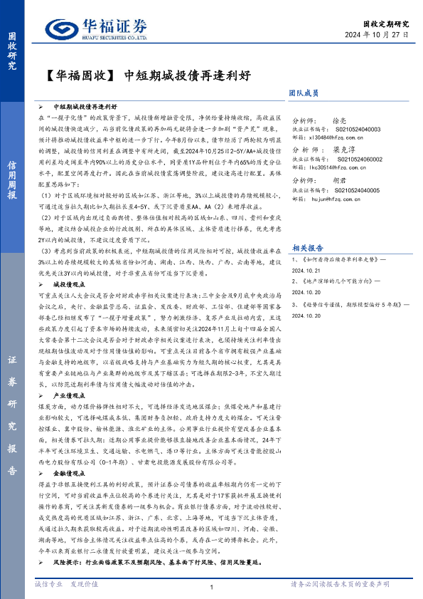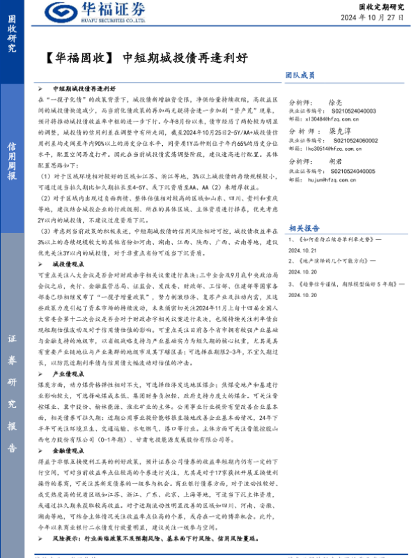 【华福证券】【20241027】【华福固收】中短期城投债再逢利好-26页