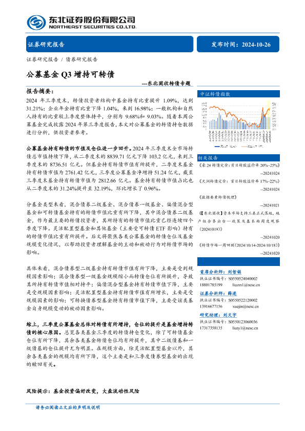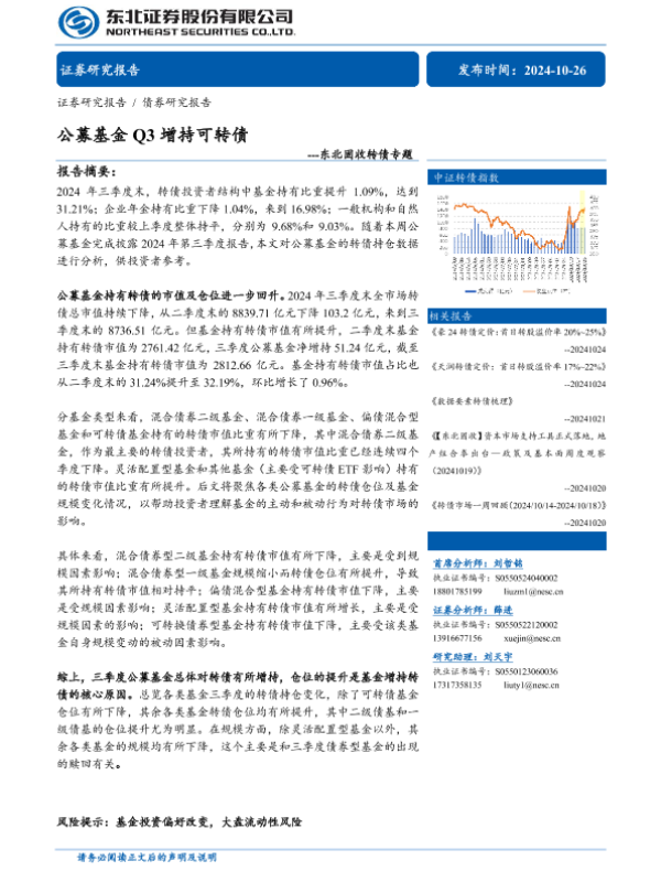 【东北证券】【20241026】公募基金Q3增持可转债---东北固收转债专题-14页