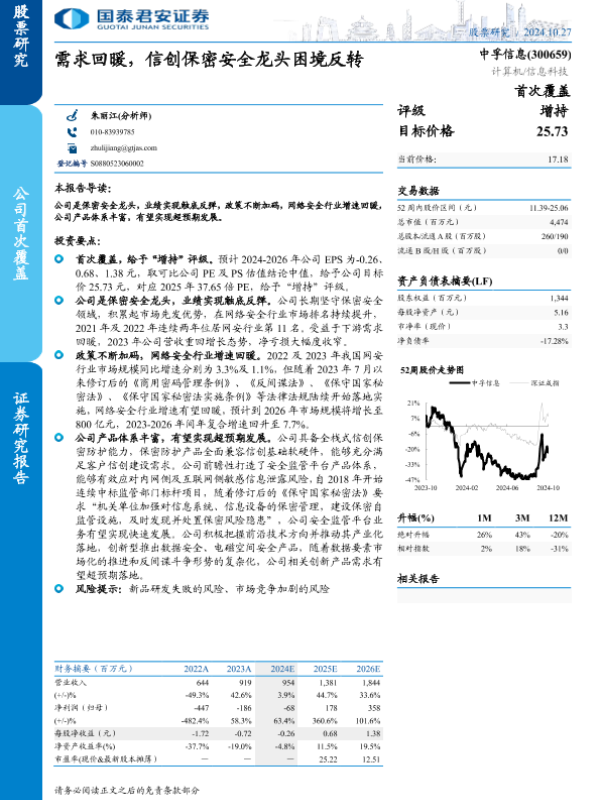 【国泰君安证券】【20241027】中孚信息(300659)需求回暖,信创保密安全龙头困境反转-14页