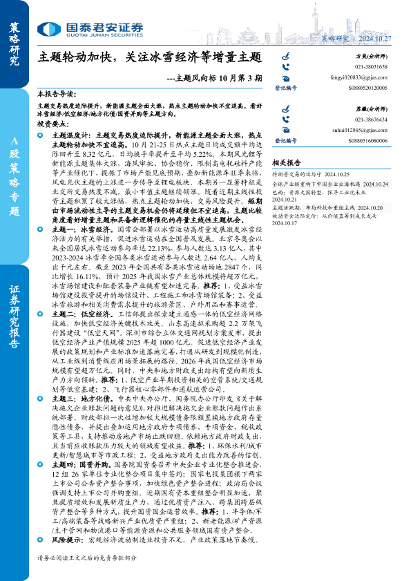 【国泰君安证券】【20241027】主题风向标10月第3期:主题轮动加快,关注冰雪经济等增量主题-18页