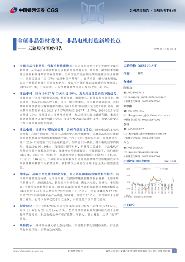 【银河证券】【20241028】云路股份(688190)深度报告:全球非晶带材龙头,非晶电机打造新增长点-35页