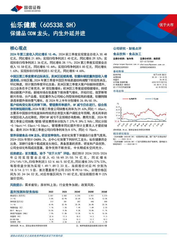 【国信证券】【20241030】仙乐健康(605338)保健品ODM龙头,内生外延并进-17页