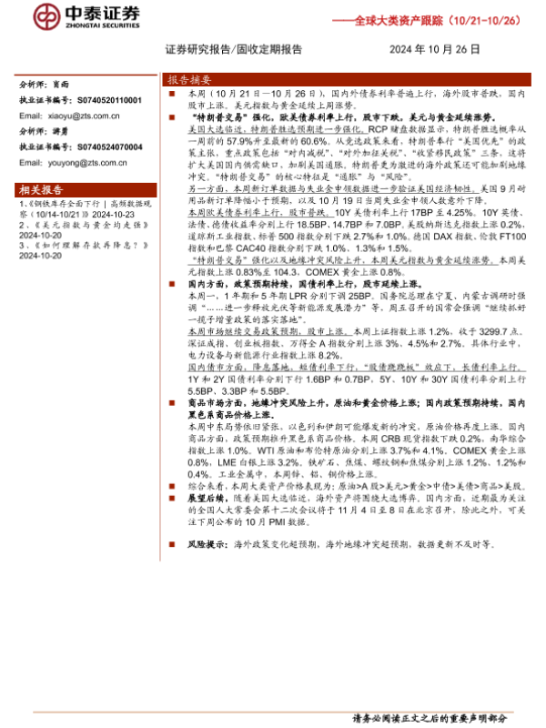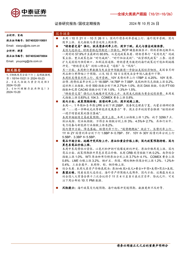 【中泰证券】【20241026】全球大类资产跟踪:“特朗普交易”进一步强化-11页