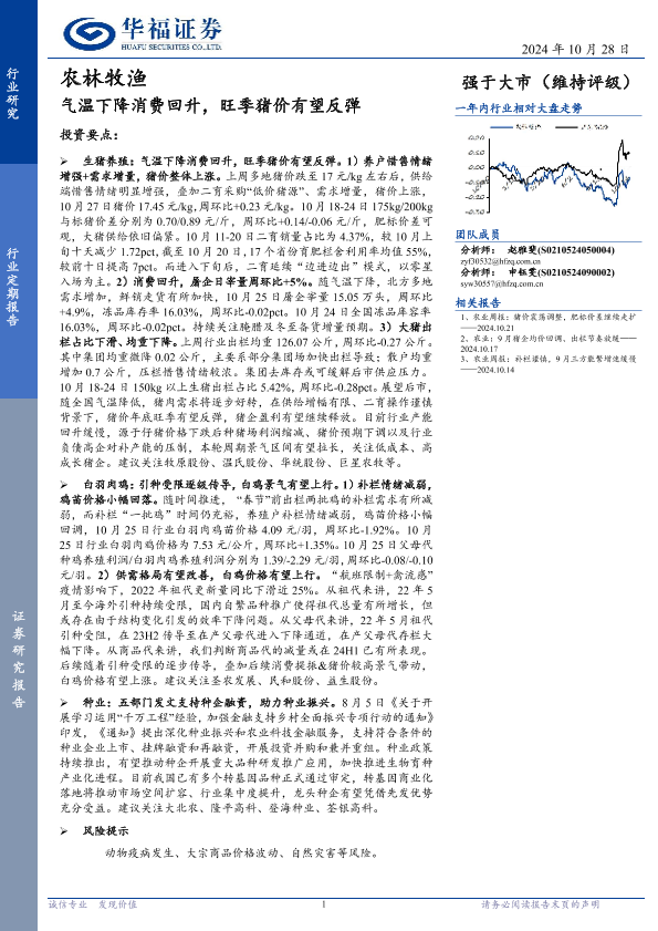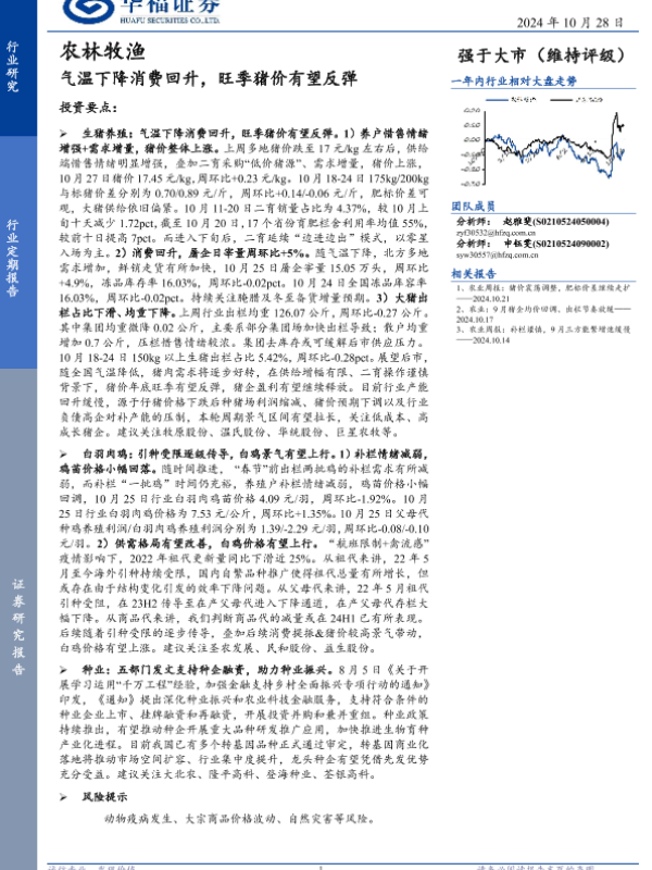 【华福证券】【20241028】农林牧渔行业定期报告:气温下降消费回升,旺季猪价有望反弹-12页