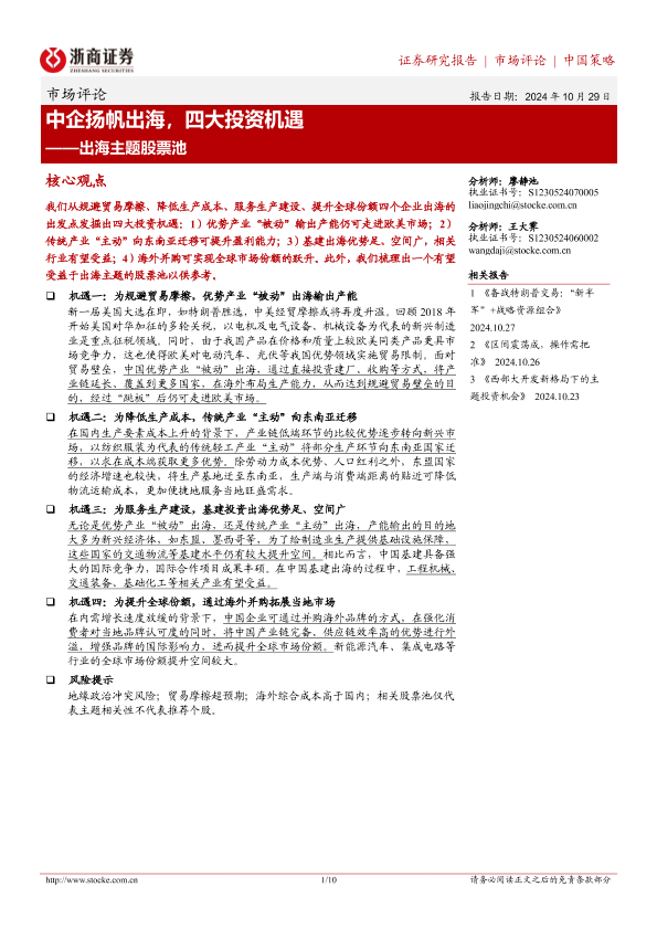 【浙商证券】【20241029】出海主题股票池:中企扬帆出海,四大投资机遇-10页