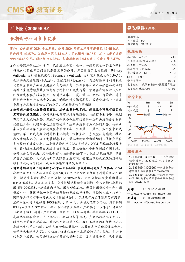 【海通证券】【20241029】利安隆(300596)长期看好公司未来发展-14页