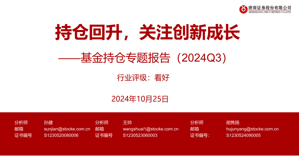 【浙商证券】【20241025】医药行业基金持仓专题报告(2024Q3) 持仓回升,关注创新成长-17页
