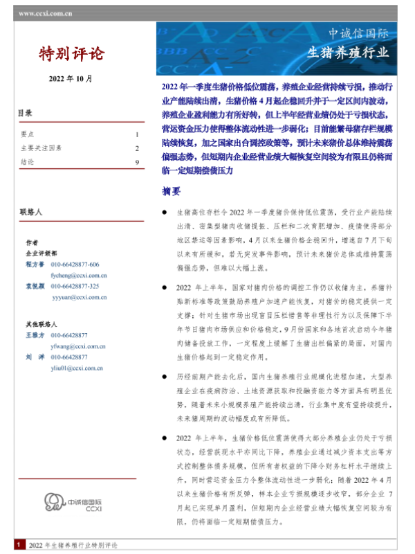 【中诚信国际】【20221001】中诚信-生猪养殖行业特评-11页