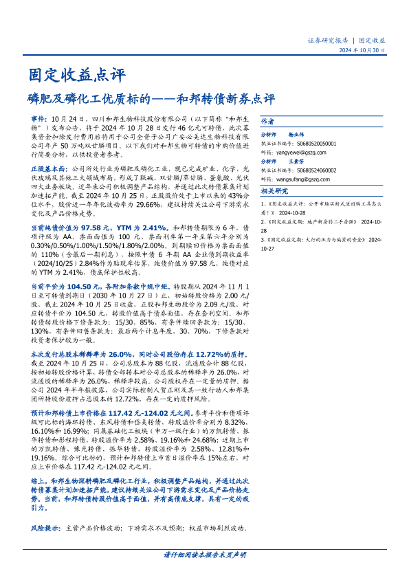 【国盛证券】【20241030】和邦转债新券点评:磷肥及磷化工优质标的-10页
