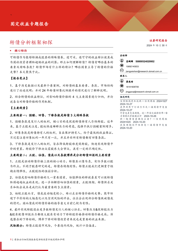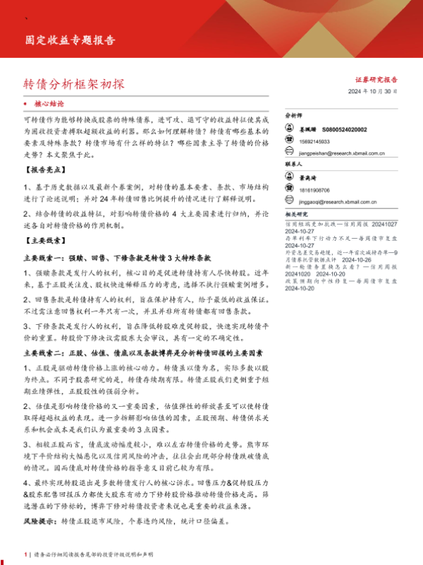【西部证券】【20241030】固定收益专题报告:转债分析框架初探-21页