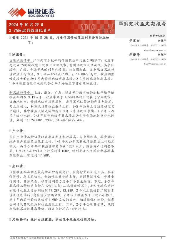 【国投证券】【20241029】固定收益定期报告:2.7%附近找性价比资产-19页