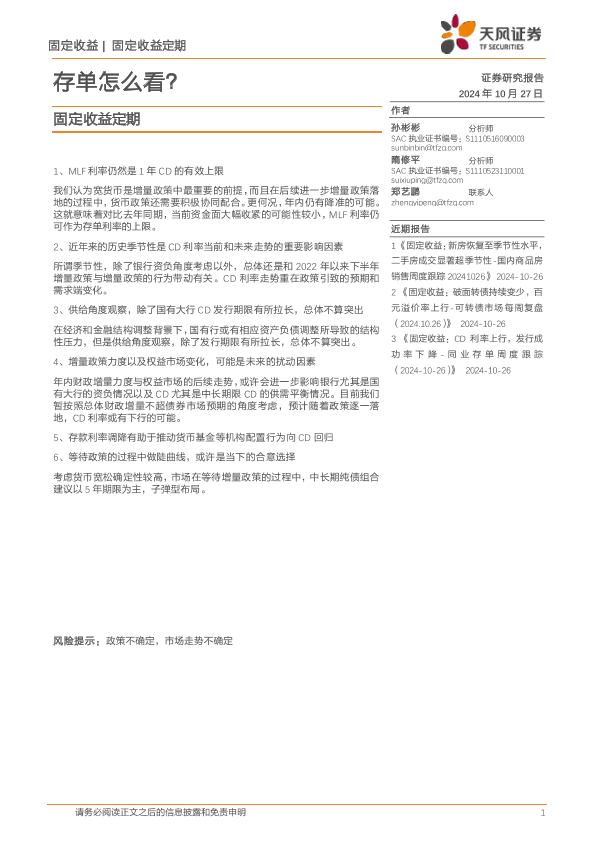 【天风证券】【20241027】固定收益定期:存单怎么看?-15页