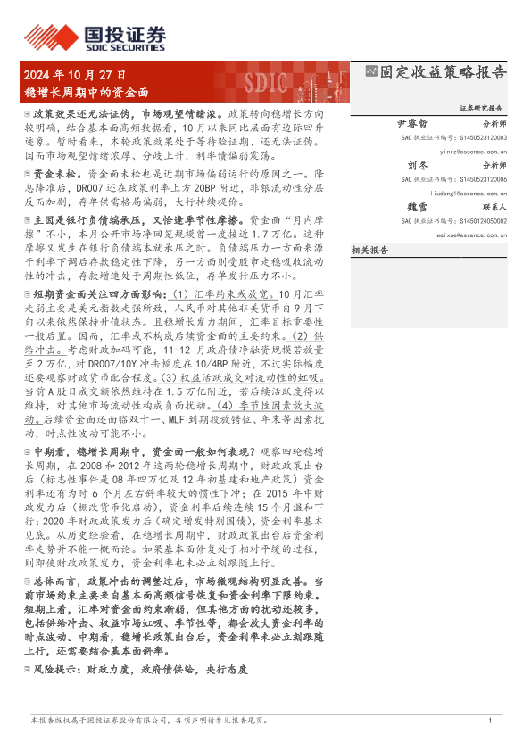 【国投证券】【20241027】固定收益策略报告:稳增长周期中的资金面-10页