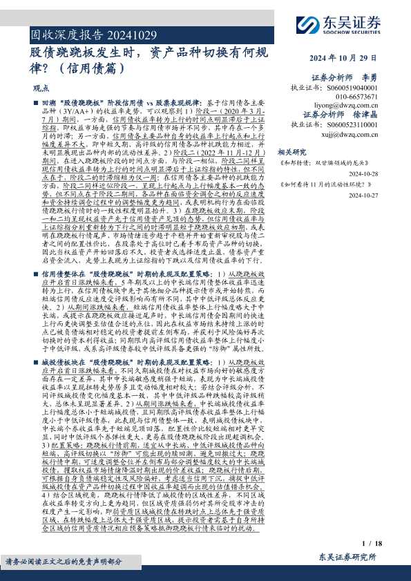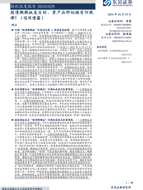 【东吴证券】【20241029】固收深度报告:股债跷跷板发生时,资产品种切换有何规律?(信用债篇)-18页