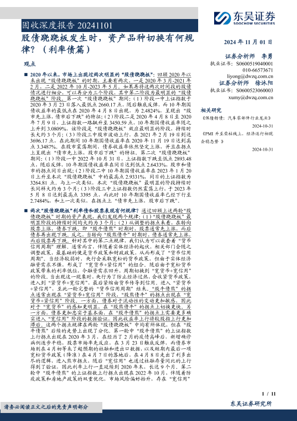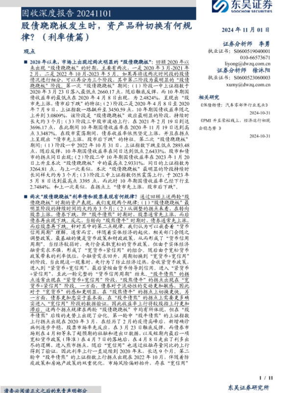 【东吴证券】【20241101】固收深度报告:股债跷跷板发生时,资产品种切换有何规律?(利率债篇)-11页