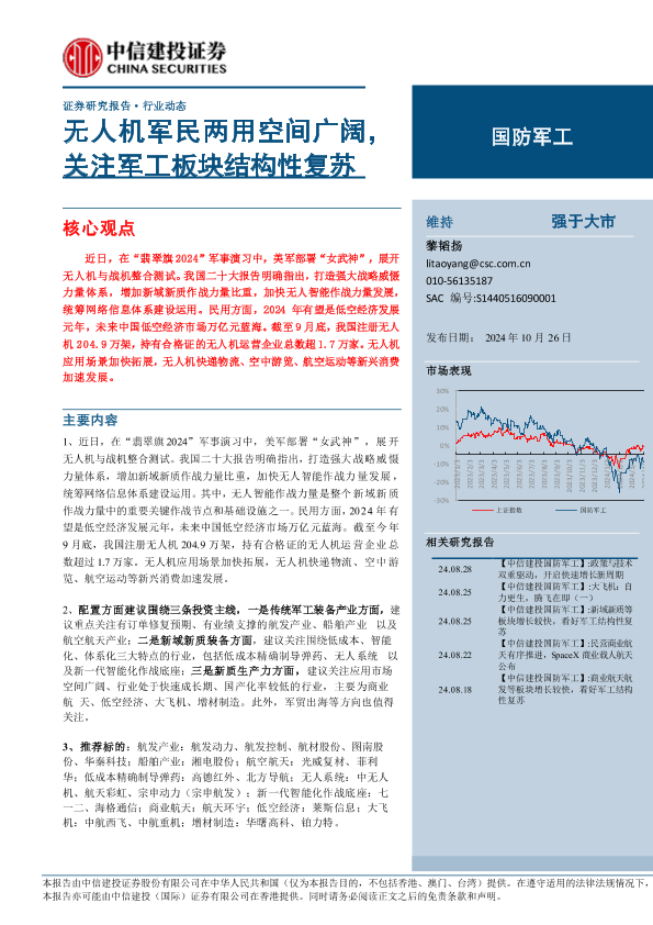 【中信建投证券】【20241026】国防军工行业:无人机军民两用空间广阔,关注军工板块结构性复苏-29页