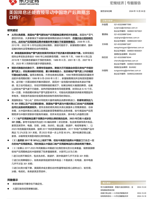 【东方证券】【20241030】宏观经济专题报告:美国降息还能直接带动中国地产后周期出口吗?-13页