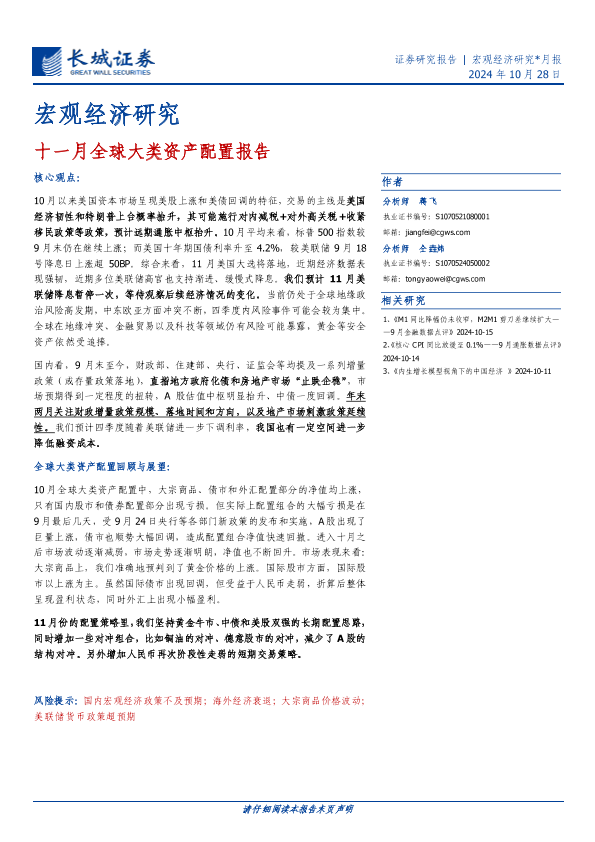 【长城证券】【20241028】十一月全球大类资产配置报告-16页