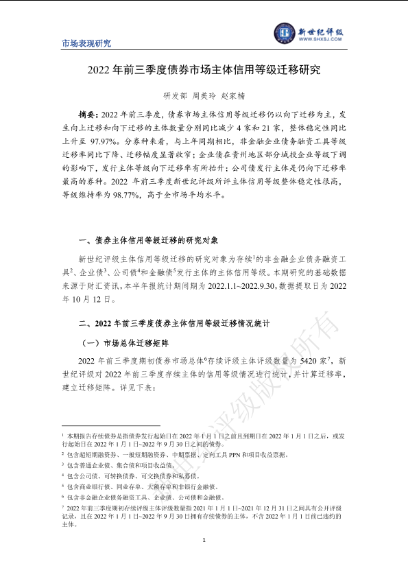 【新世纪评级】【20221231】2022年前三季度债券市场主体信用等级迁移研究-12页