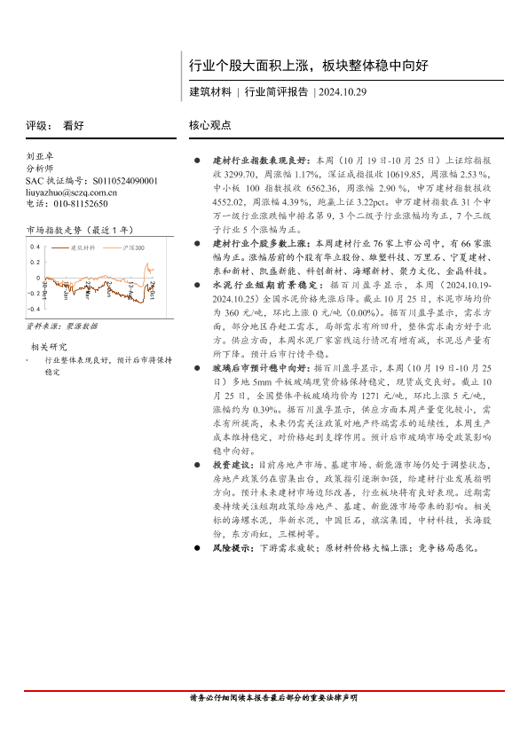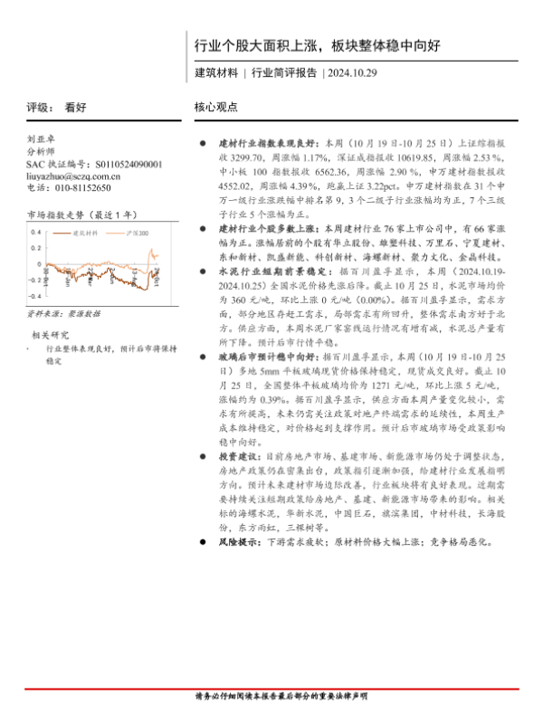 【首创证券】【20241029】建筑材料行业简评报告:行业个股大面积上涨,板块整体稳中向好-19页