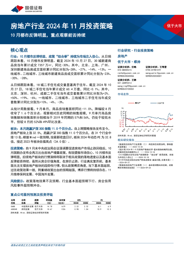 【国信证券】【20241031】房地产行业2024年11月投资策略:10月楼市反弹明显,重点观察能否持续-12页