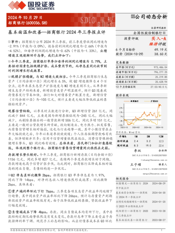 【国投证券】【20241029】招商银行(600036)2024年三季报点评:基本面温和改善-13页