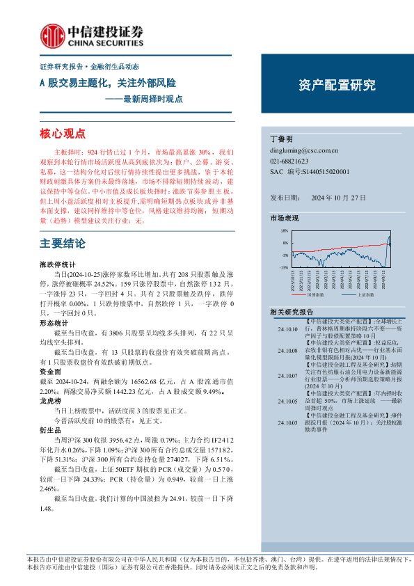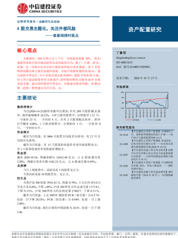 【中信建投证券】【20241027】最新周择时观点:A股交易主题化,关注外部风险-14页