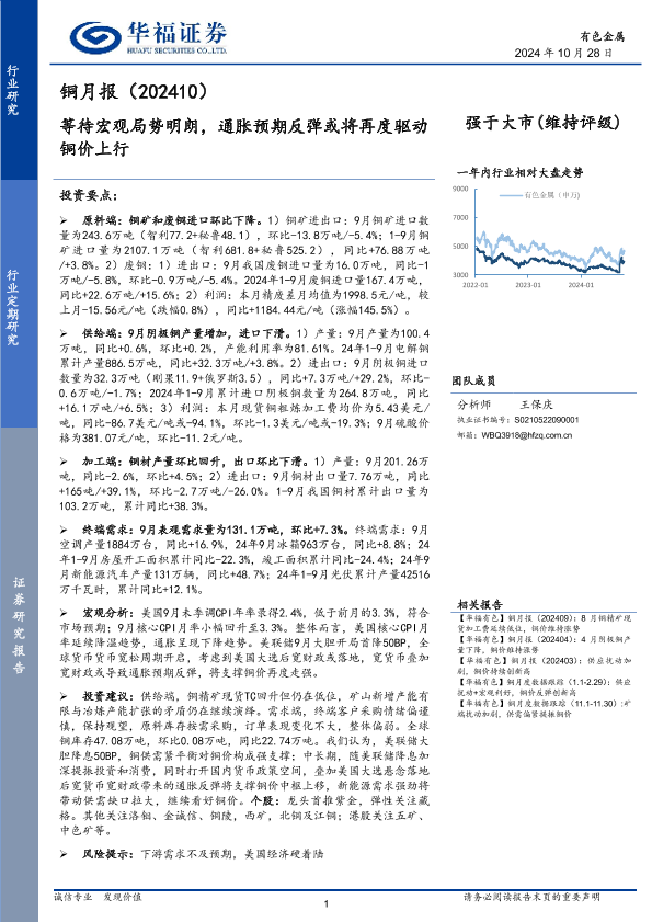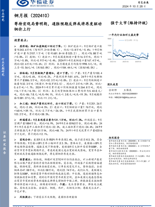【华福证券】【20241028】有色金属行业铜月报:等待宏观局势明朗,通胀预期反弹或将再度驱动铜价上行-11页