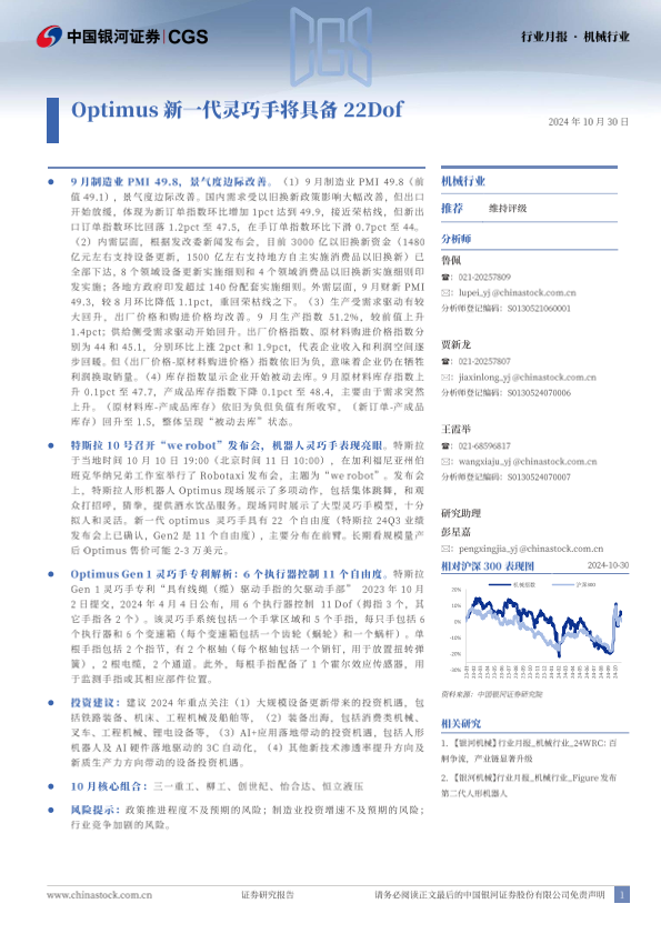 【银河证券】【202410】机械行业月报:Optimus新代灵巧手将具备22Dof-28页