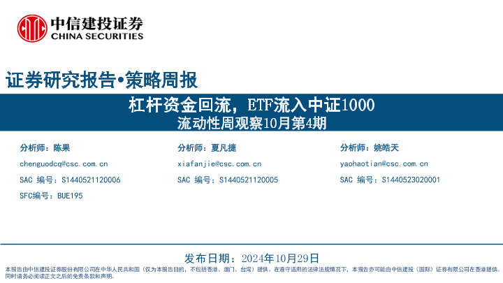【中信建投证券】【20241029】流动性周观察10月第4期:杠杆资金回流,ETF流入中证1000-27页
