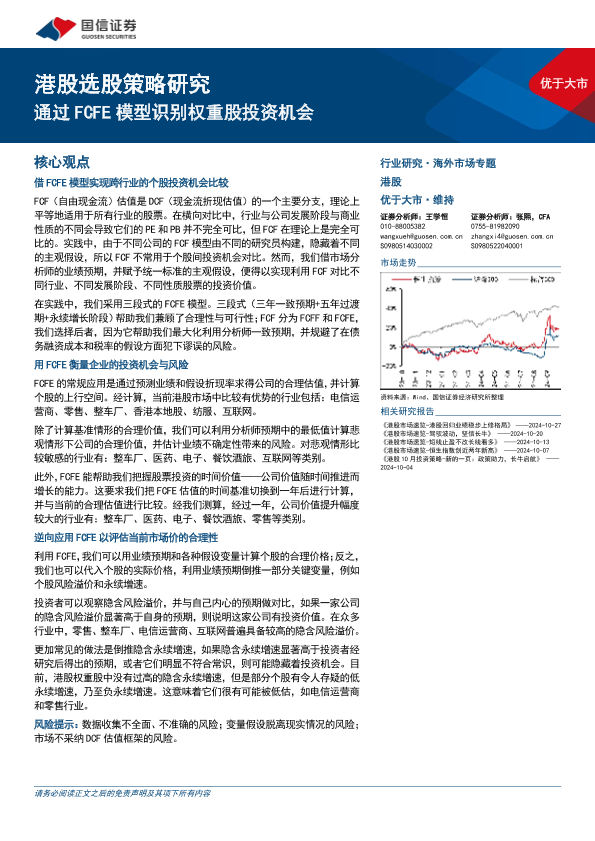 【国信证券】【20241029】港股选股策略研究:通过FCFE模型识别权重股投资机会-18页