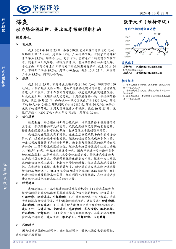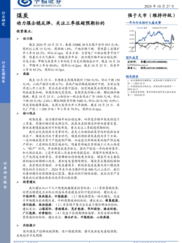【华福证券】【20241027】煤炭行业定期报告:动力煤企稳反弹,关注三季报超预期标的-22页