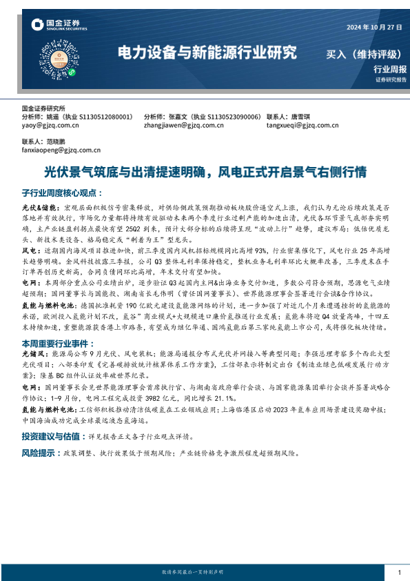 【国金证券】【20241027】电力设备与新能源行业研究:光伏景气筑底与出清提速明确,风电正式开启景气右侧行情-10页