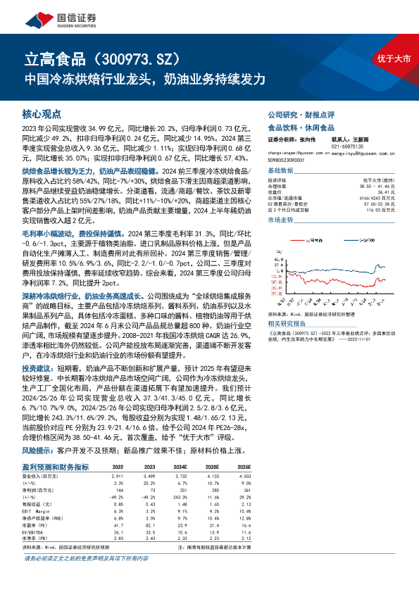 【国信证券】【20241101】立高食品(300973)中国冷冻烘焙行业龙头,奶油业务持续发力-17页