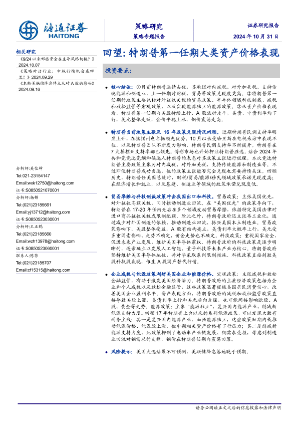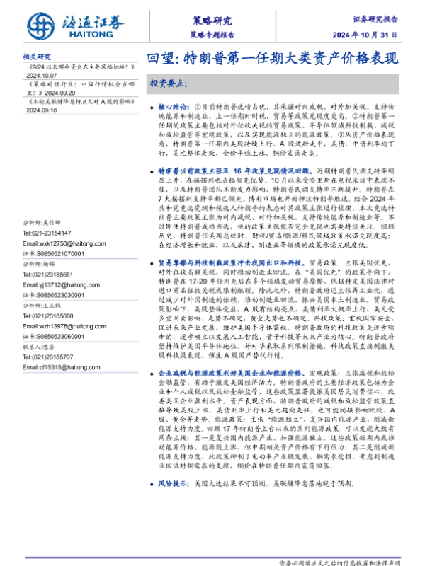 【海通证券】【20241031】策略专题报告:回望,特朗普第一任期大类资产价格表现-19页