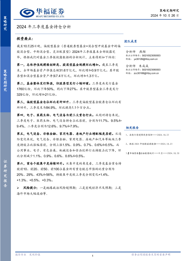 【华福证券】【20241026】2024年三季度基金持仓分析-16页