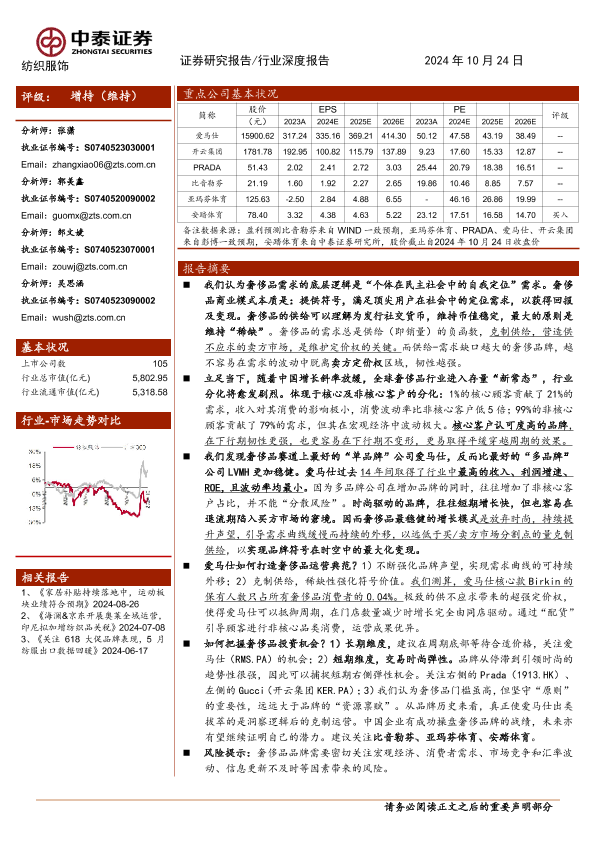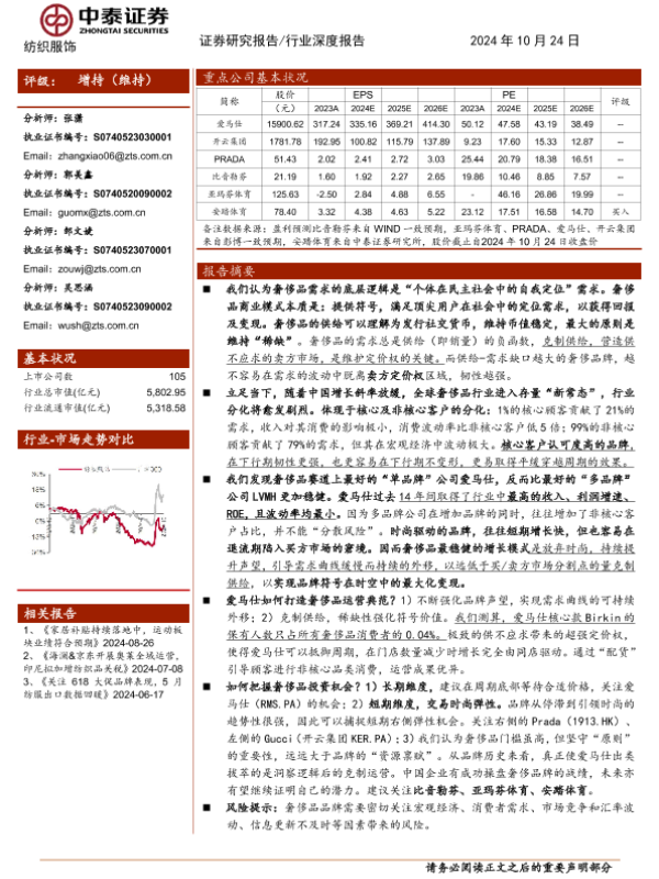 【中泰证券】【20241024】纺织服饰行业深度报告:存量时代的奢侈品分析框架,分化的底层逻辑-28页