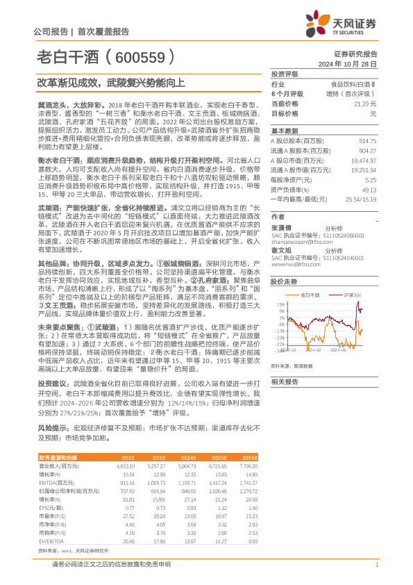 【天风证券】【20241028】老白干酒(600559)改革渐见成效,武陵复兴势能向上-31页